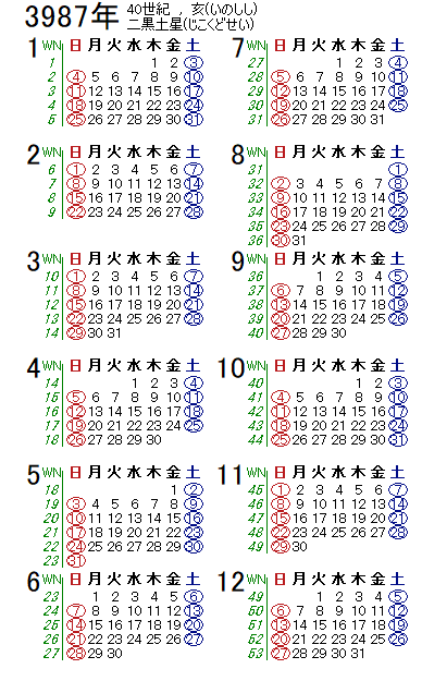 西暦3987年カレンダー