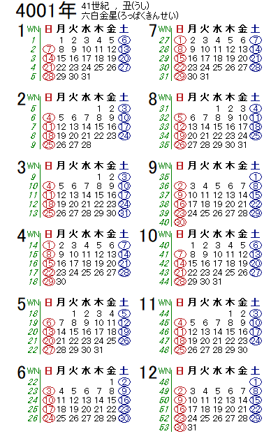 西暦4001年カレンダー