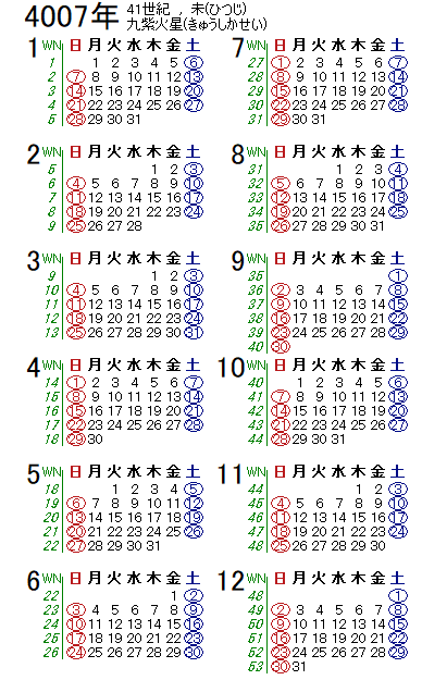 西暦4007年カレンダー
