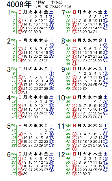 西暦4008年カレンダー