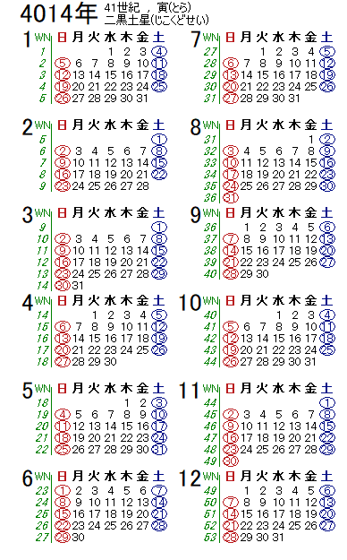 西暦4014年カレンダー