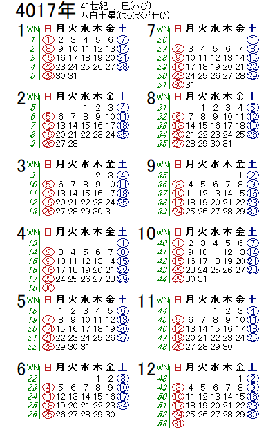 西暦4017年カレンダー