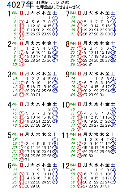 西暦4027年カレンダー