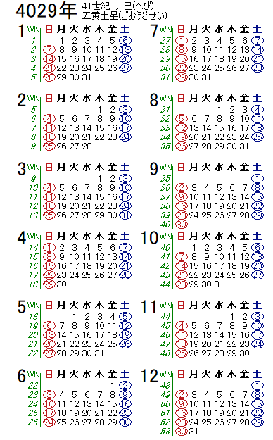 西暦4029年カレンダー