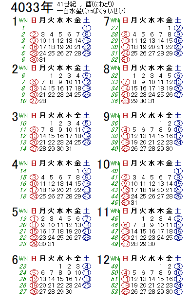 西暦4033年カレンダー